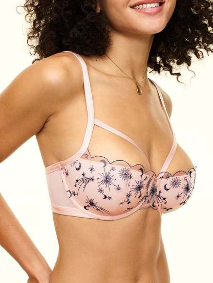 A sweet, balconette silhouette and embroidered details give this supportive, everyday style a feminine finish.