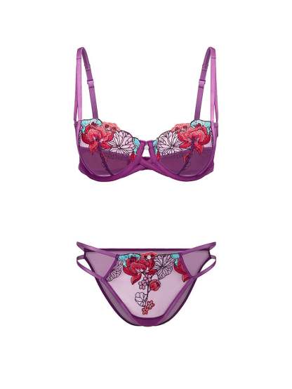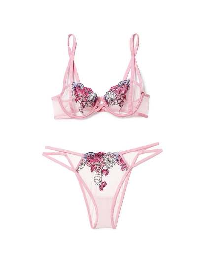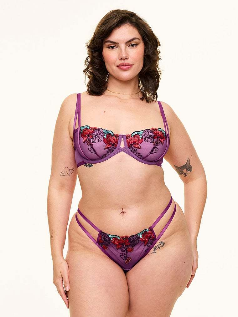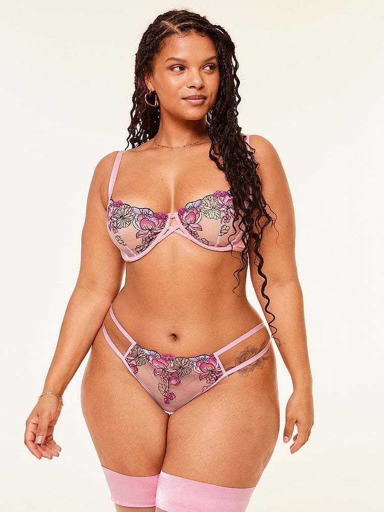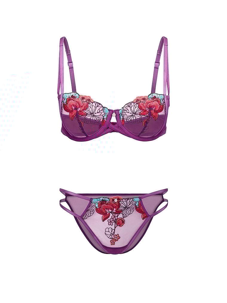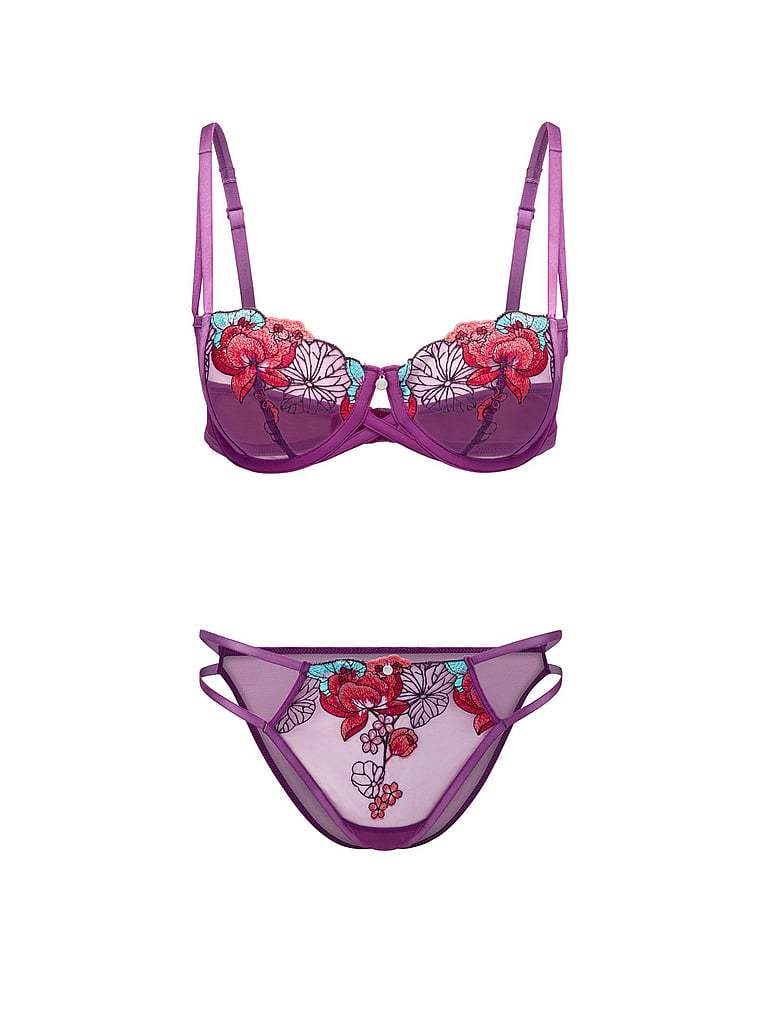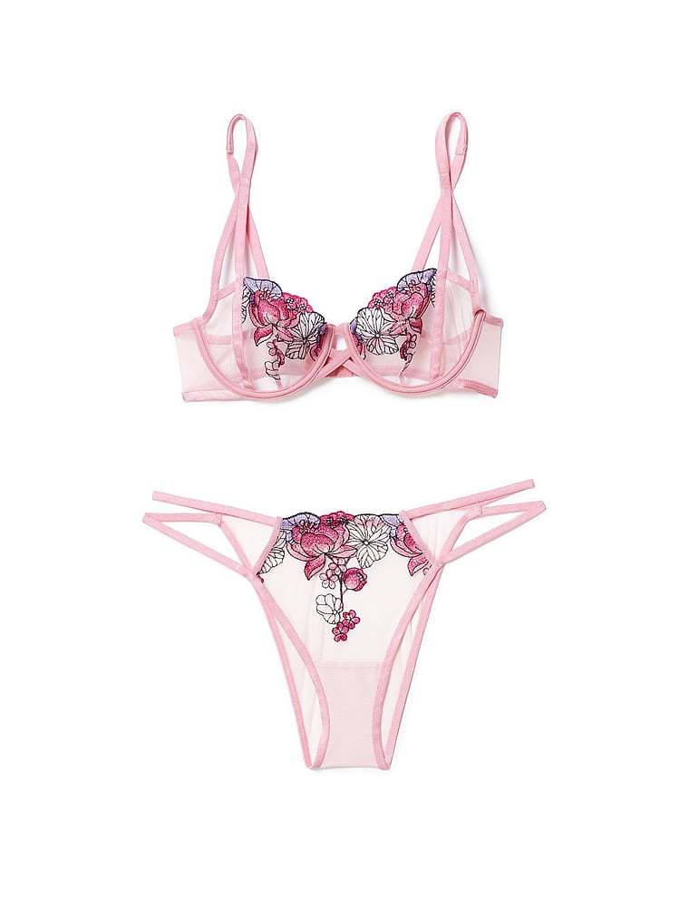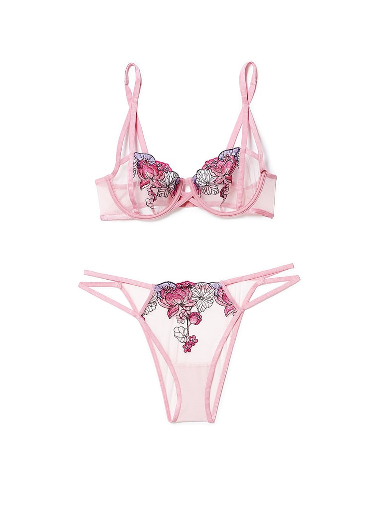 Rose-inspired embroidery trims a mesh-like lace for an ultra-romantic look that doesn't overwhelm.