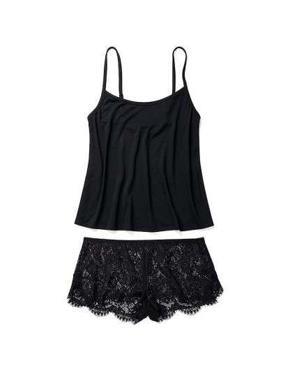 Sweet and soft in the front, luxe and lacy in the back, this easy set is perfect for lounging and sleeping all summer��and beyond.