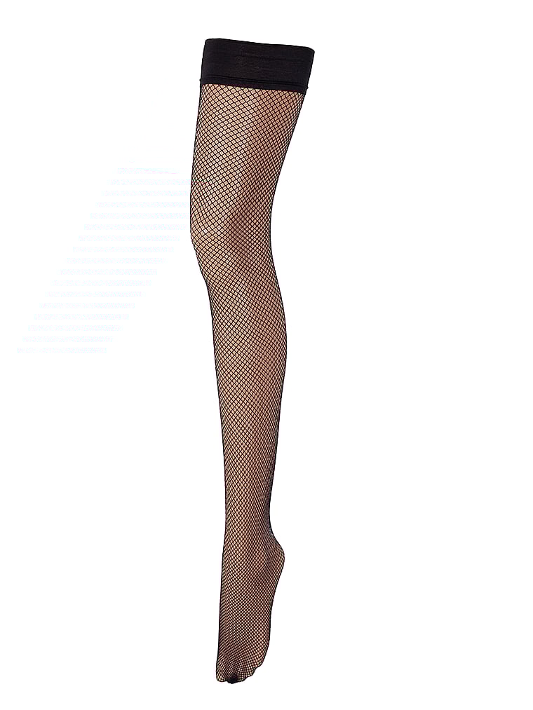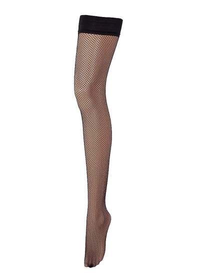 These seductive fishnet hold ups are finished with subtle stripes at the top.