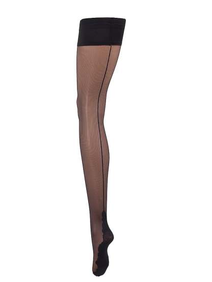 Sheer and seductive with a sleek back seam and a decorative lace band.