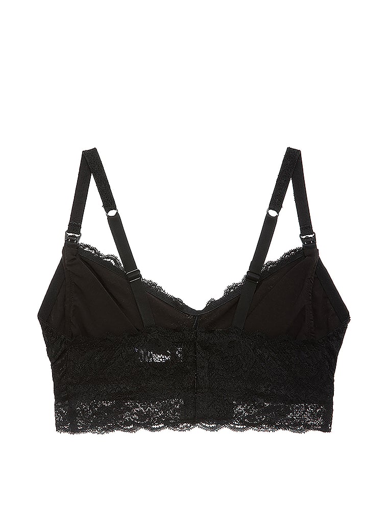 Chic lace trims this comfy bralette for designed for nursing mothers. Easy clip straps make one handed opening a snap and an easy sweetheart neckline adds soft style.
