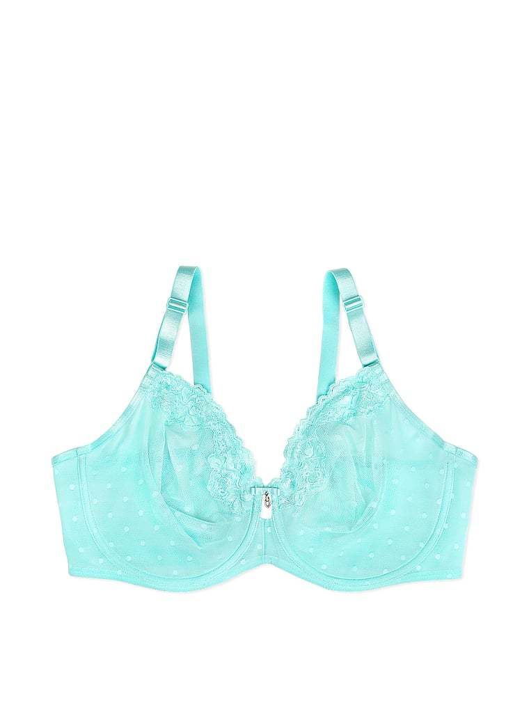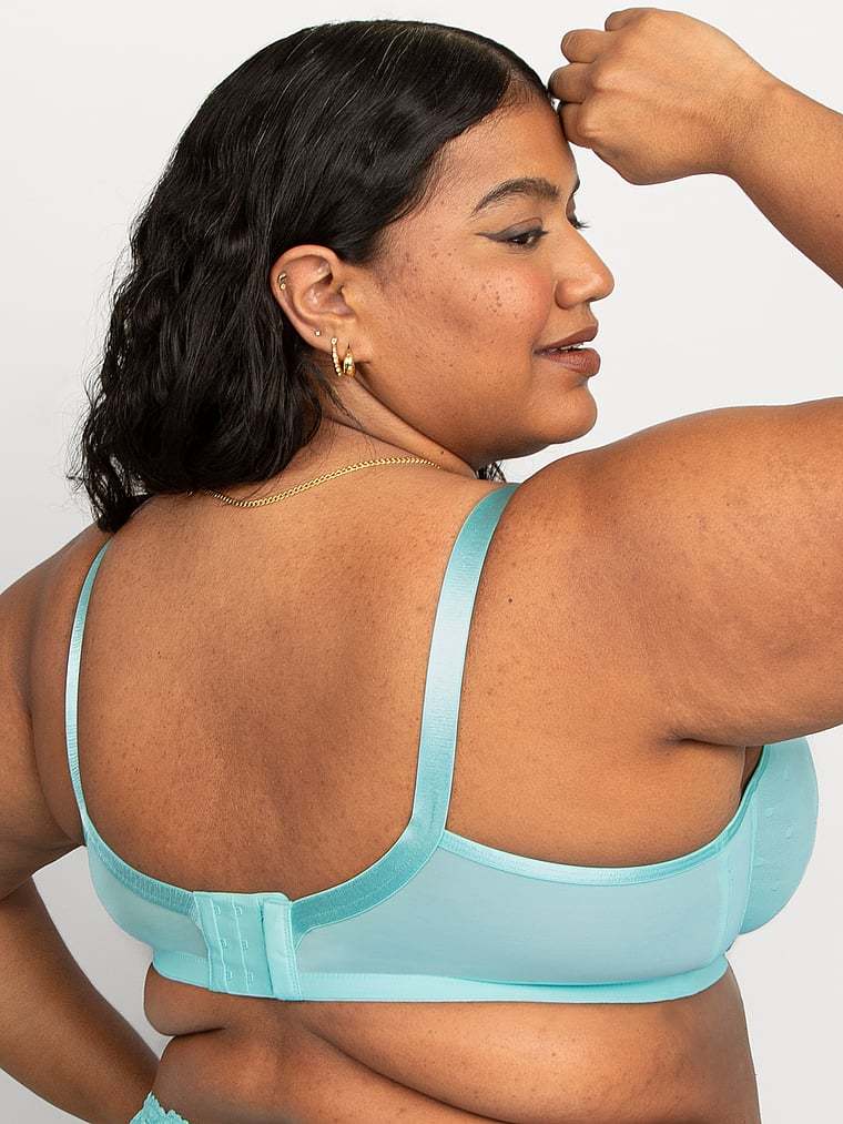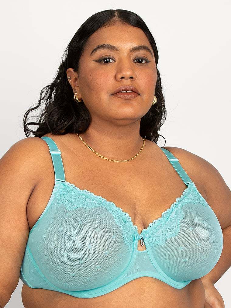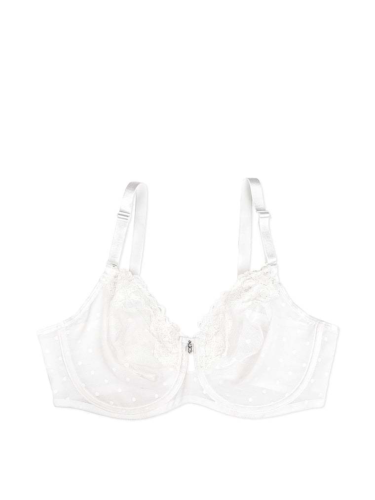 Experience breathability and coverage with this everyday style that��s constructed with two layers of sheer mesh to shape and provide support without the padding. Lace details and a playful polka-dot pattern add an elevated finish.