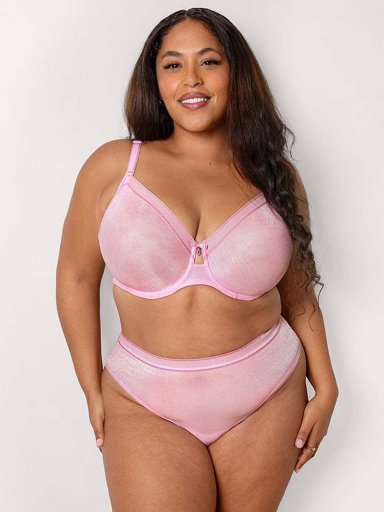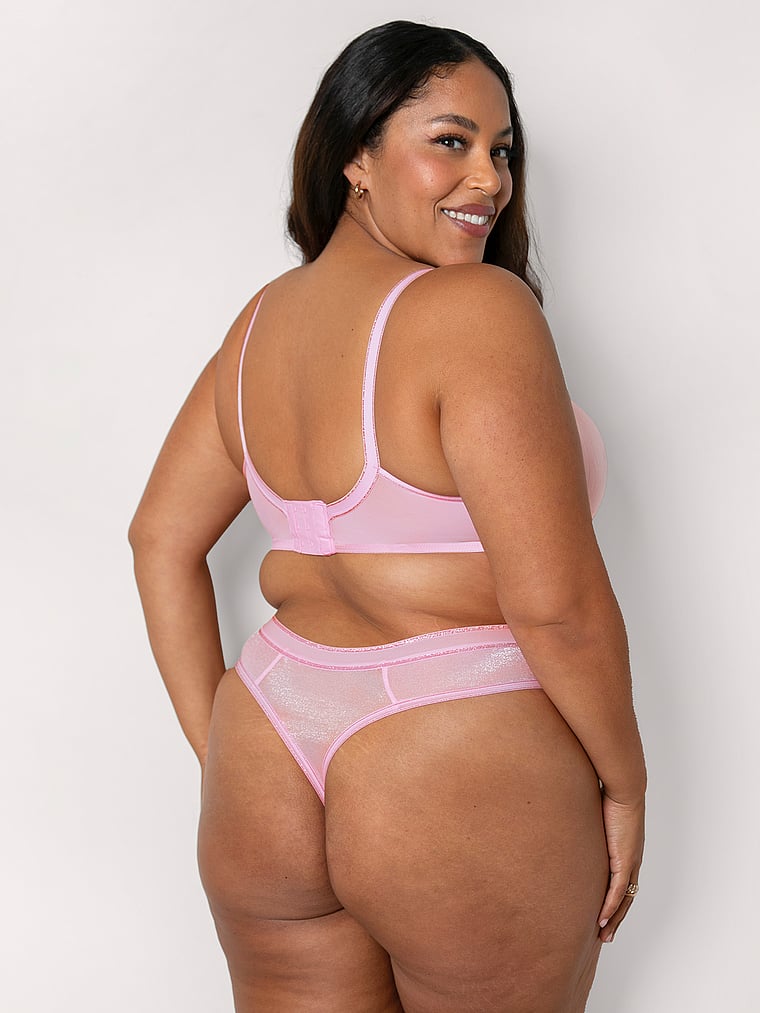 This lightweight, everyday style shines bright. Constructed with shimmering, luxe fabric, a dazzling lace trim completes the look. Pair it with the Shimmer Unlined Bra.
