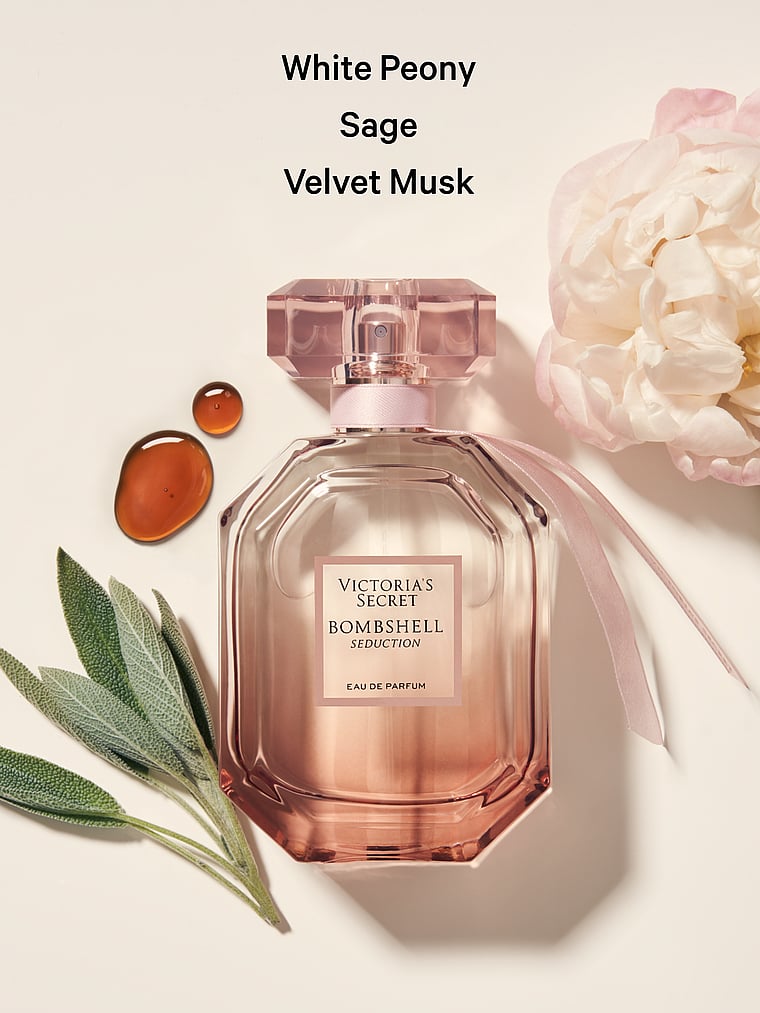 Mysterious and irresistible, Bombshell Seduction is an extension of America��s No. 1 Fragrance.* Inspired by the beauty of our signature ribbon, our perfumers designed Bombshell Seduction to evoke the cool touch of satin on bare skin. French sage opens the fragrance with an airy, refreshing feel. An intoxicating duo of white florals make up the glowing floral heart: signature white peony and creamy tuberose. Velvet musk adds a whisper of skin-like warmth, a mysterious end-note to this sheer beauty.