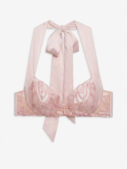 Oh-so pretty and pink and ready for anything �� this underwire bra offers sweet, sexy bow ties at the neck and a charm at center front for a bit of sparkle. Pair it with the Hallie Thong Panty for a matching set.