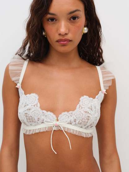 Sweet and a bit demure, this lovely bralette boasts contrast tulle ruffles and metallic rosettes for a feminine touch. Pair it with the Isabella Bloomer Short for a complete set.