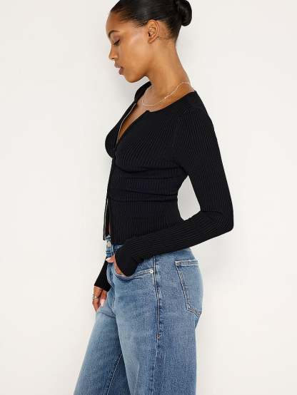 Good American Virgo Rib Zip Front Sweater