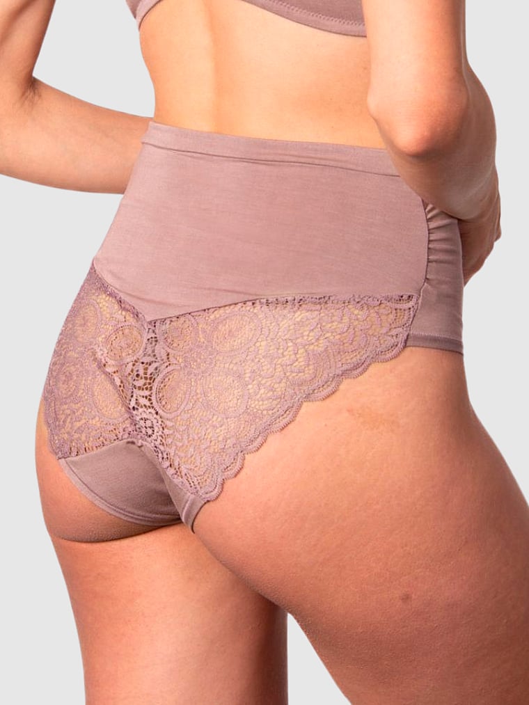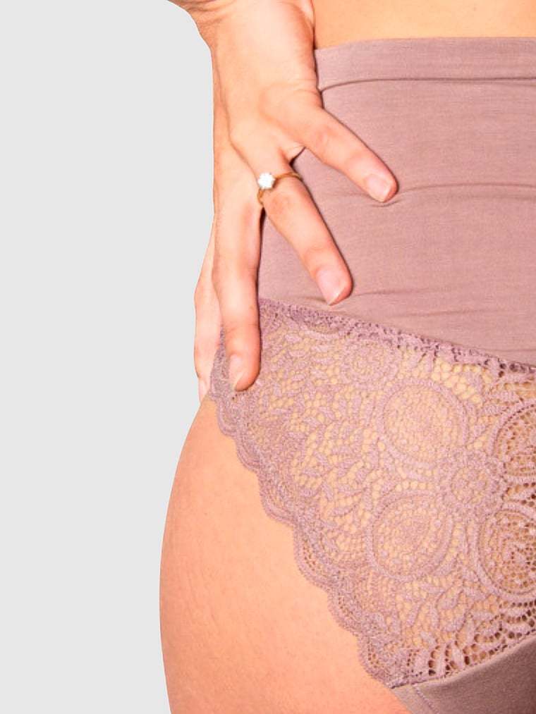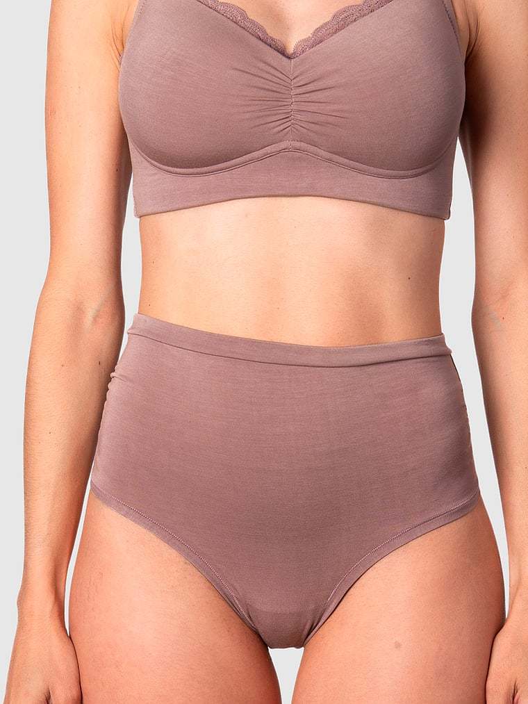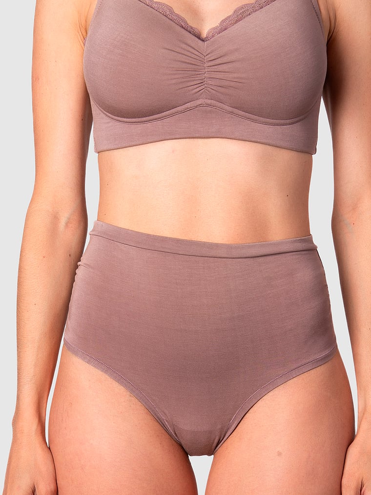 Crafted from a soft bamboo fabric, this style offers over-the-belly comfort with ruched details and lace accents for an elevated finish. Pair it with the Serenity Bamboo Nursing Bra for a luxurious lingerie set.