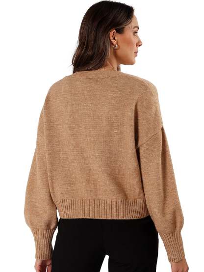 The flattering V-neckline gracefully frames the face and adds a stylish edge to your look while the ribbed cuffs ensuring a snug fit that keeps the chill away.