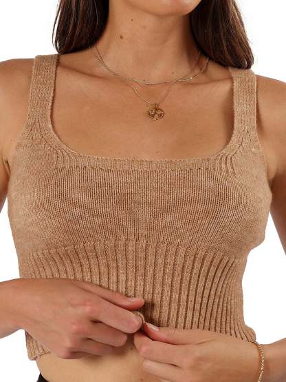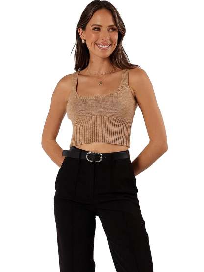 Designed with a contemporary cropped length, this piece features a graceful round neckline that complements the collar bone and non-adjustable straps ensuring a seamless fit.
