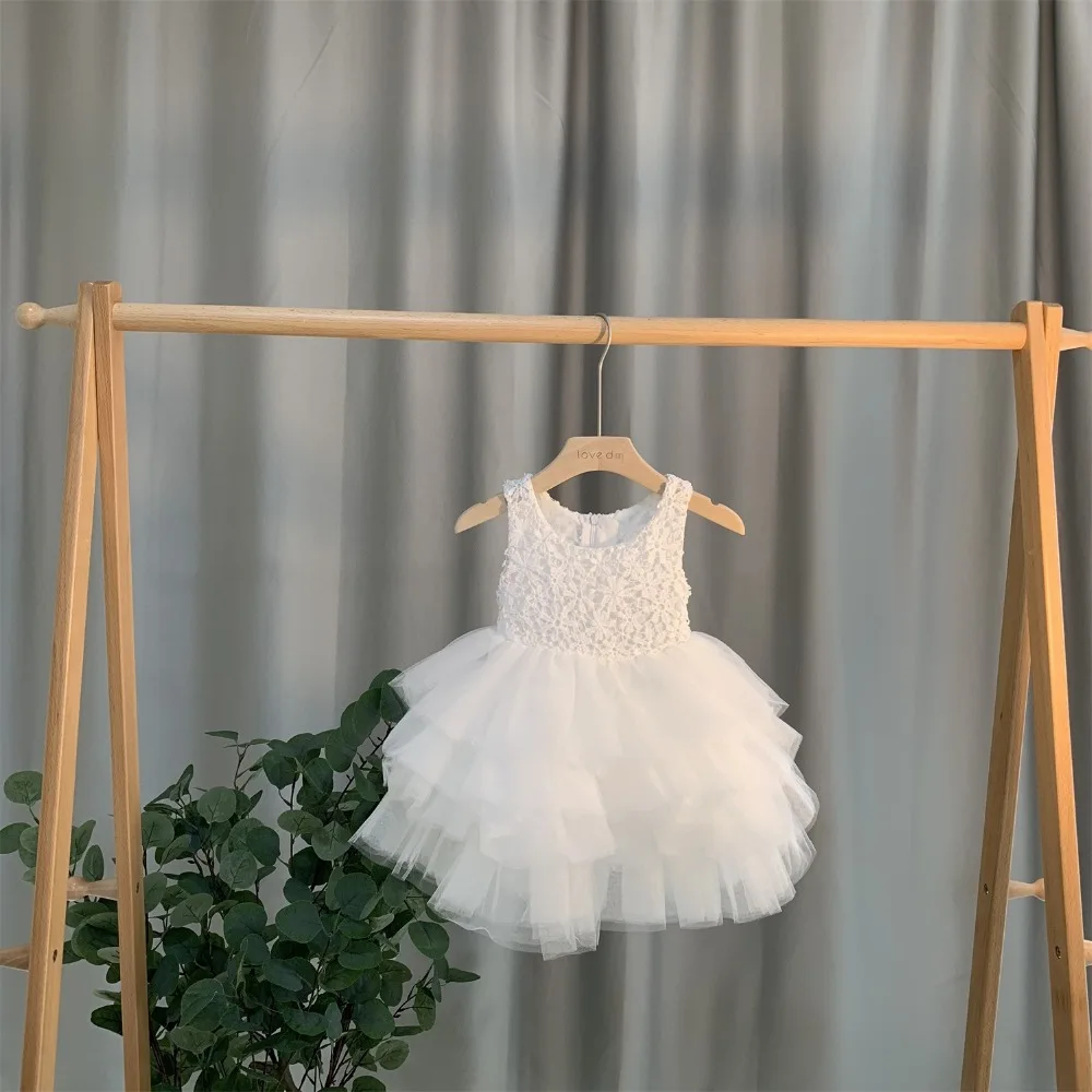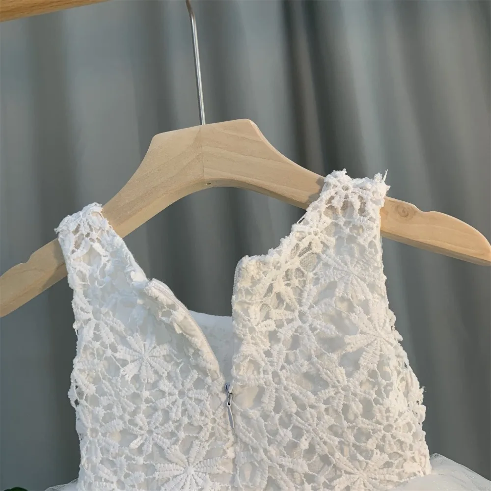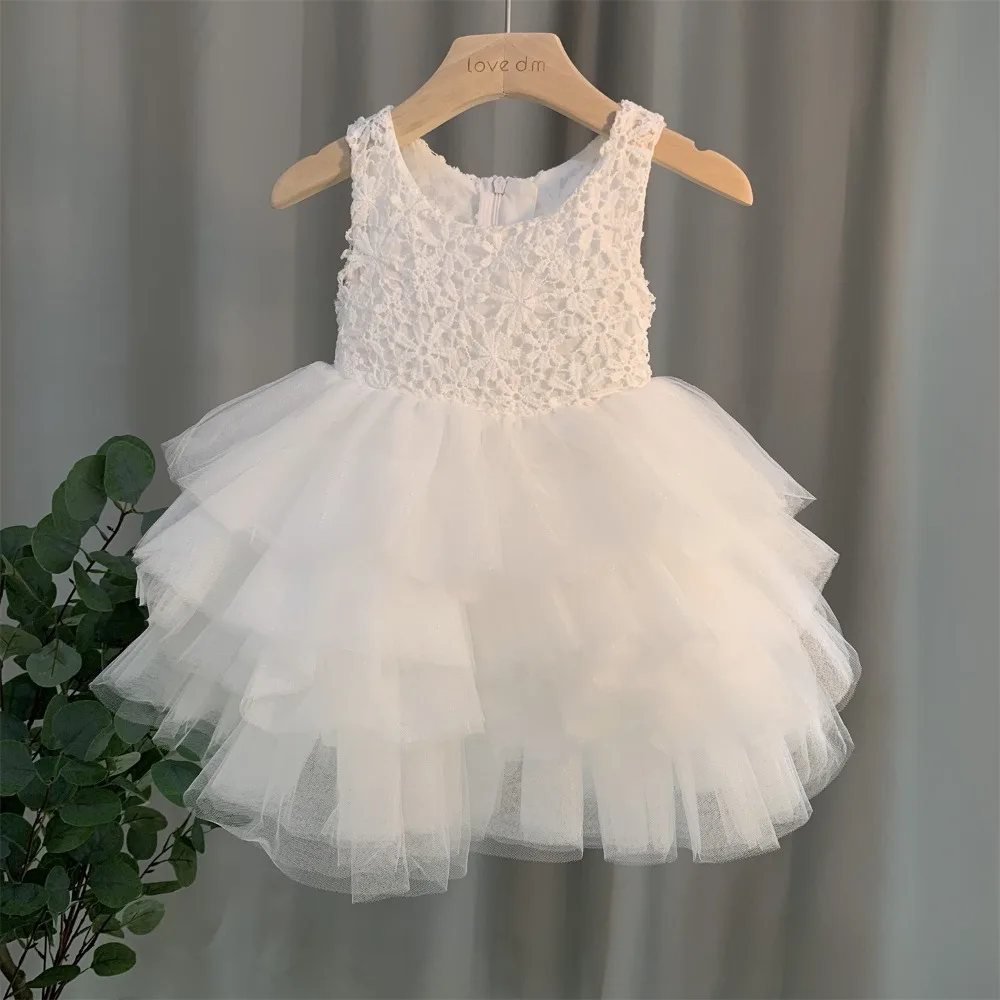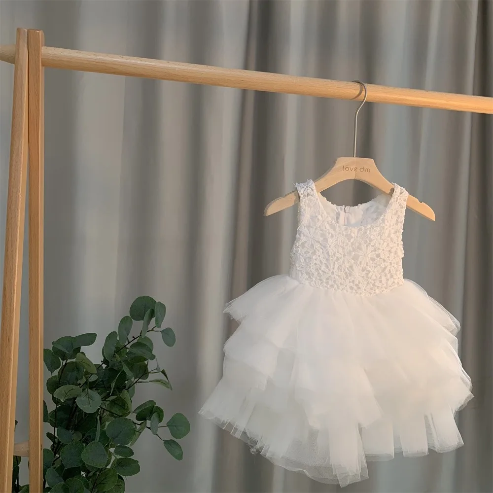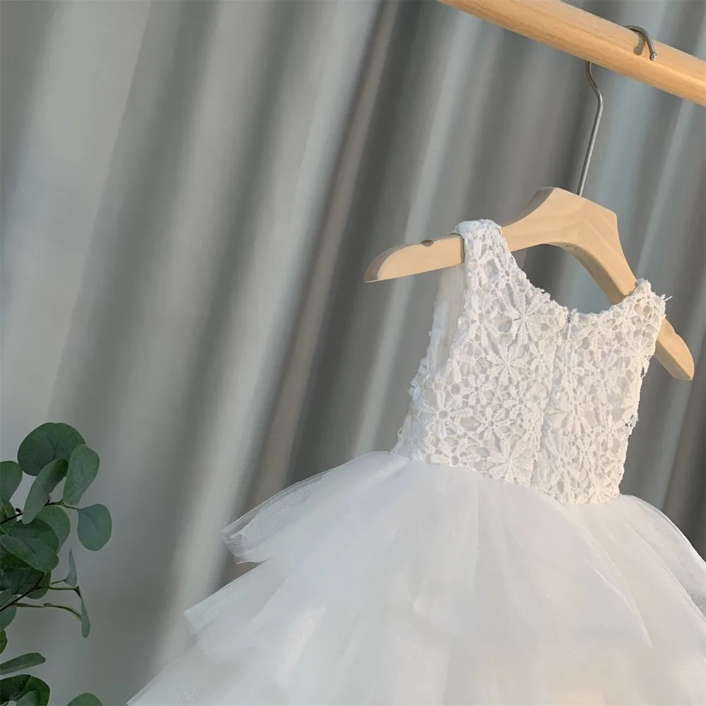 This subtle lace dress is a piece for your little girl. The round neckline and sleeveless design are the perfect combinations for any special occasion. This dress features a contrasting lace, complete with tiered layers, this dress screams girly! A lovely white dress that can be dressed up or down with a cardi and accessories.