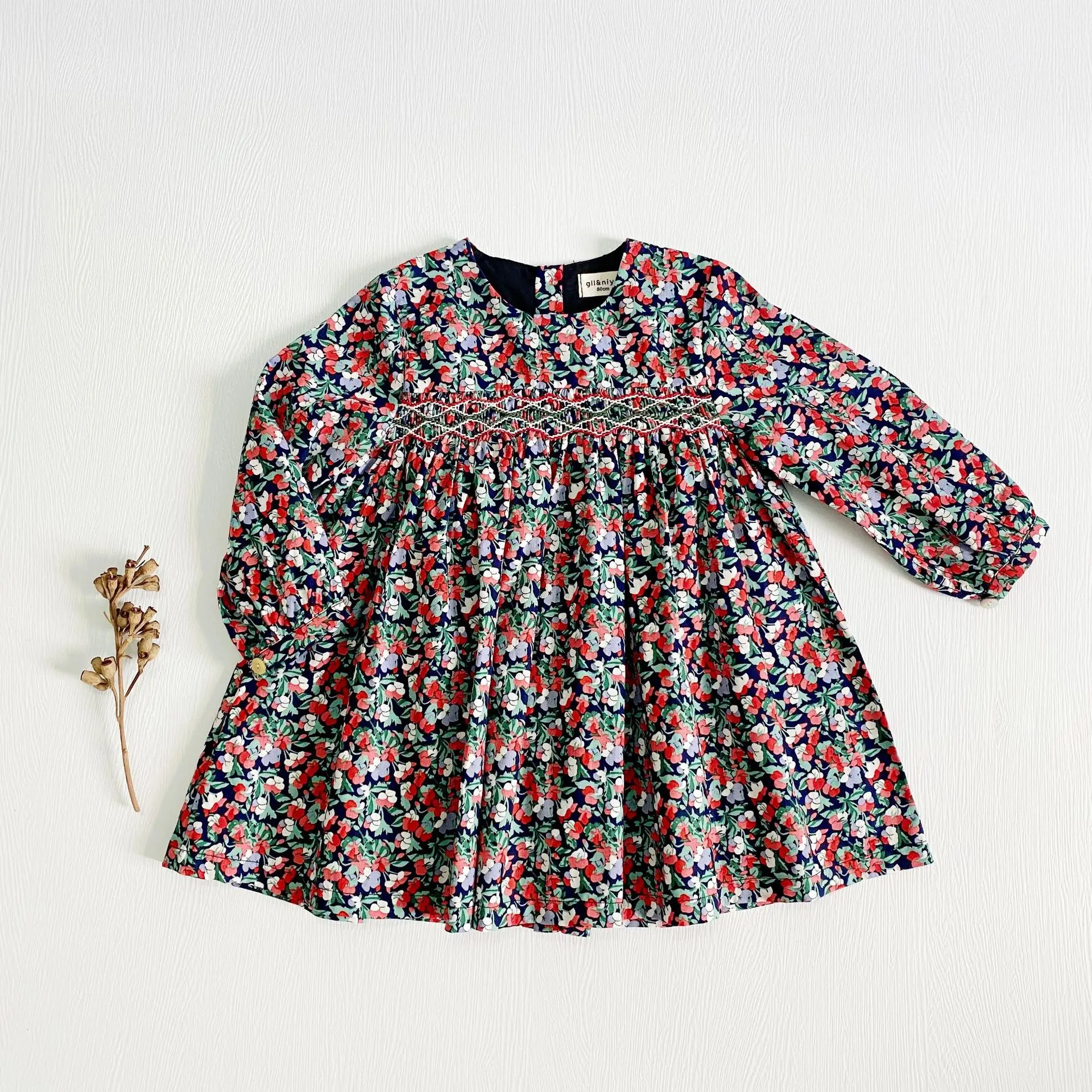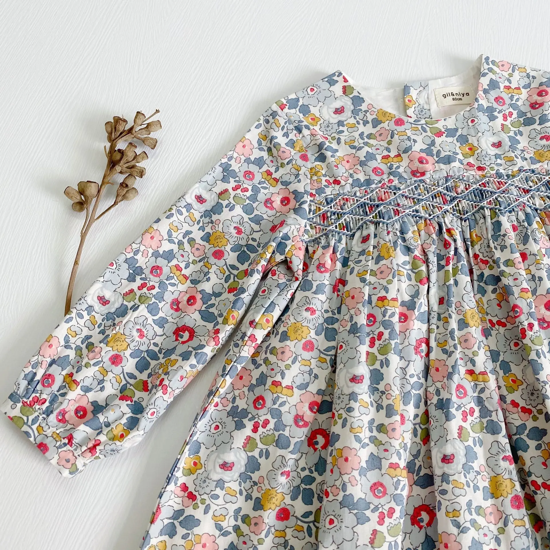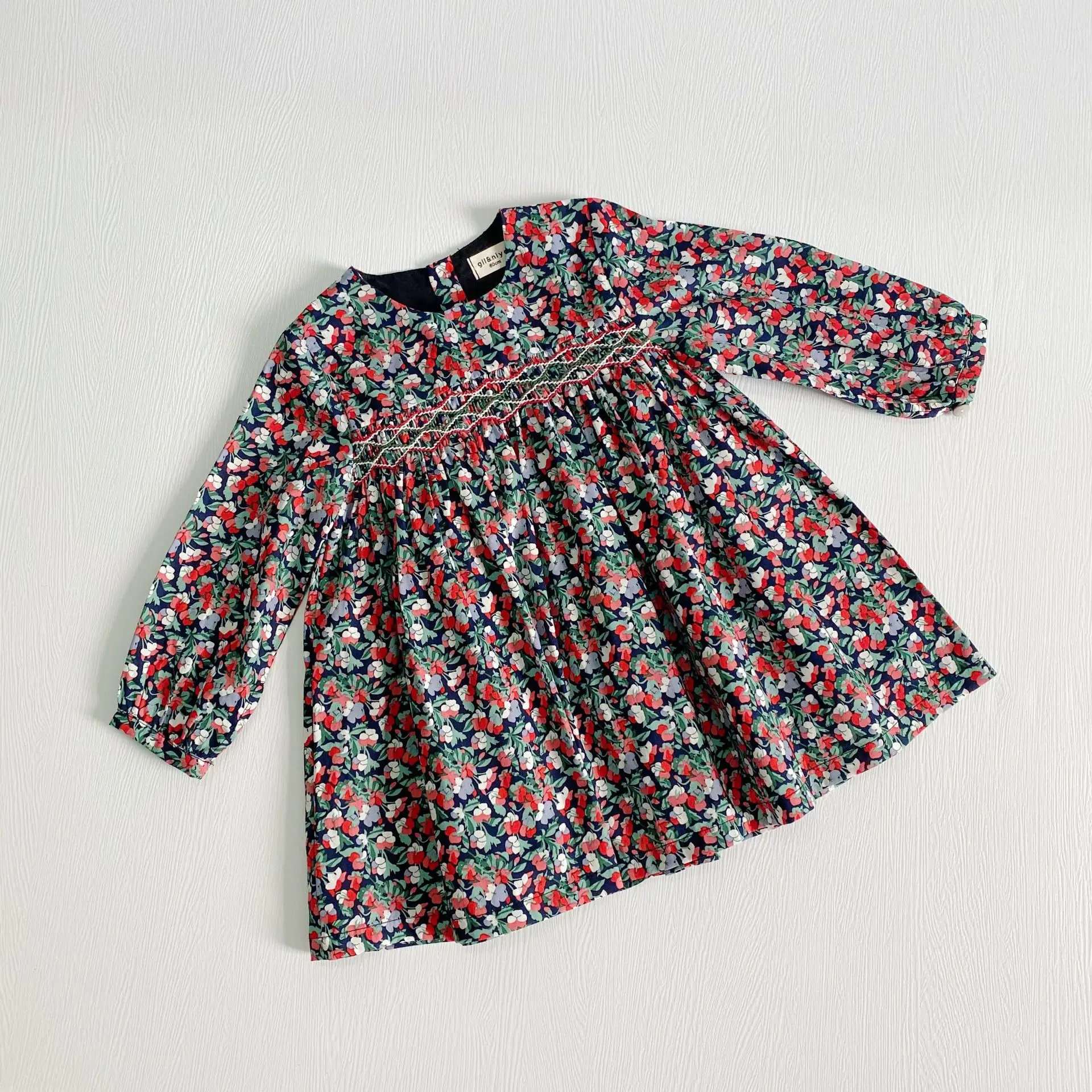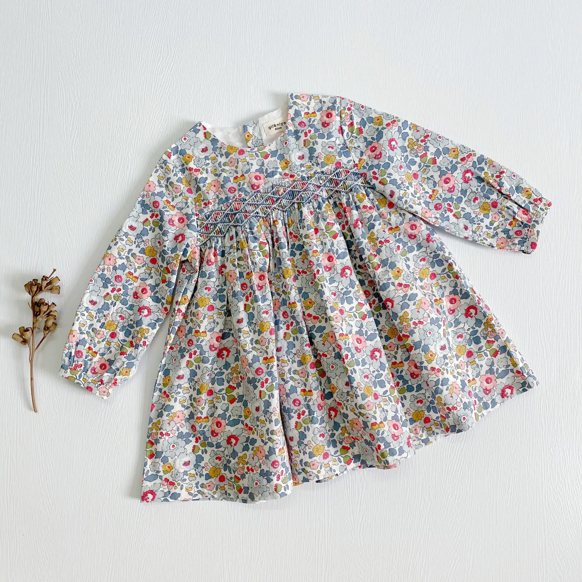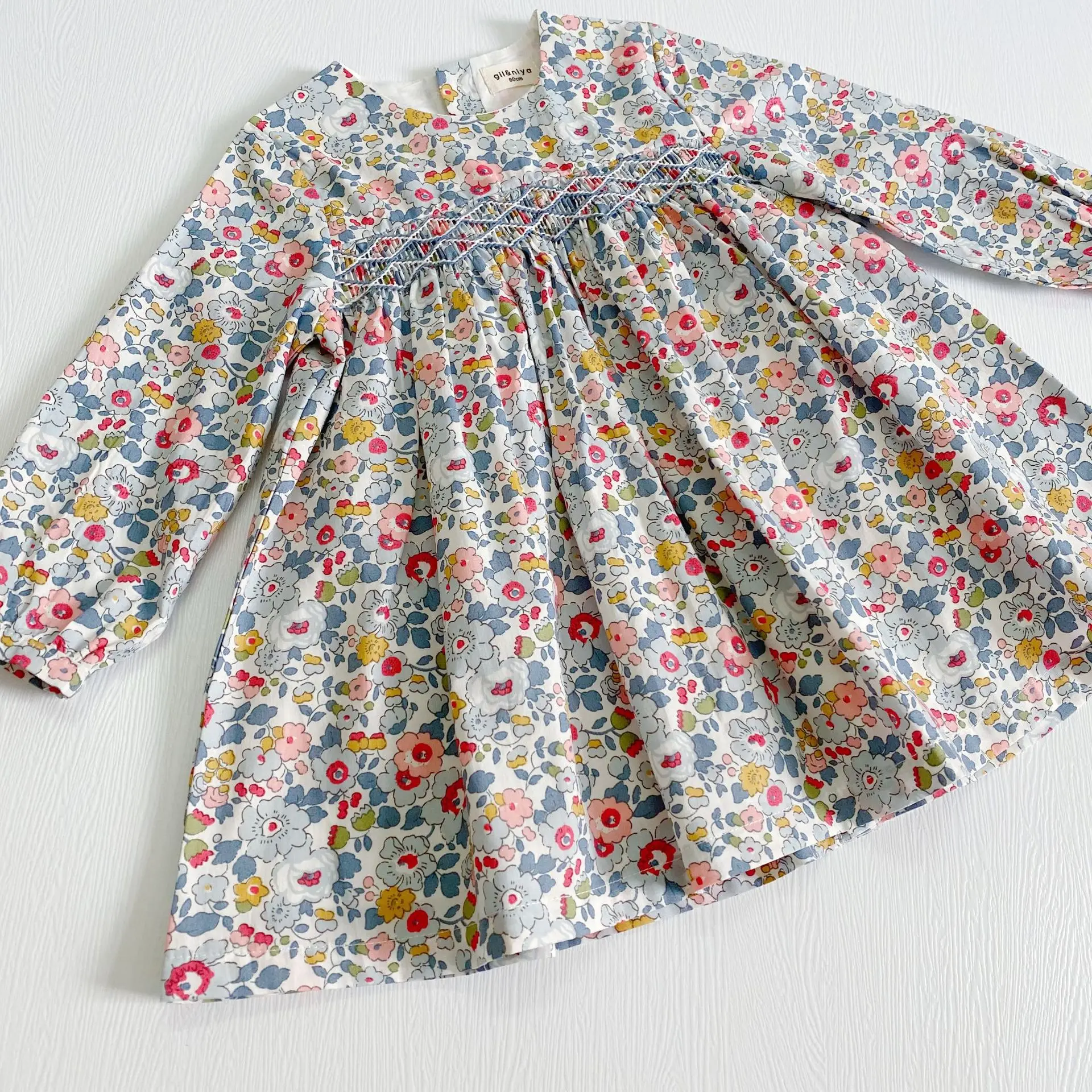 This long sleeve floral dress with a back closure is perfect for your little one to wear this season. The floral smock dress is comfy and soft and suits your little girl on her adventure. It's ideal for the little fashionista in your life! It features delicate flowers all over and is a picture-perfect style that can be dressed up or down.