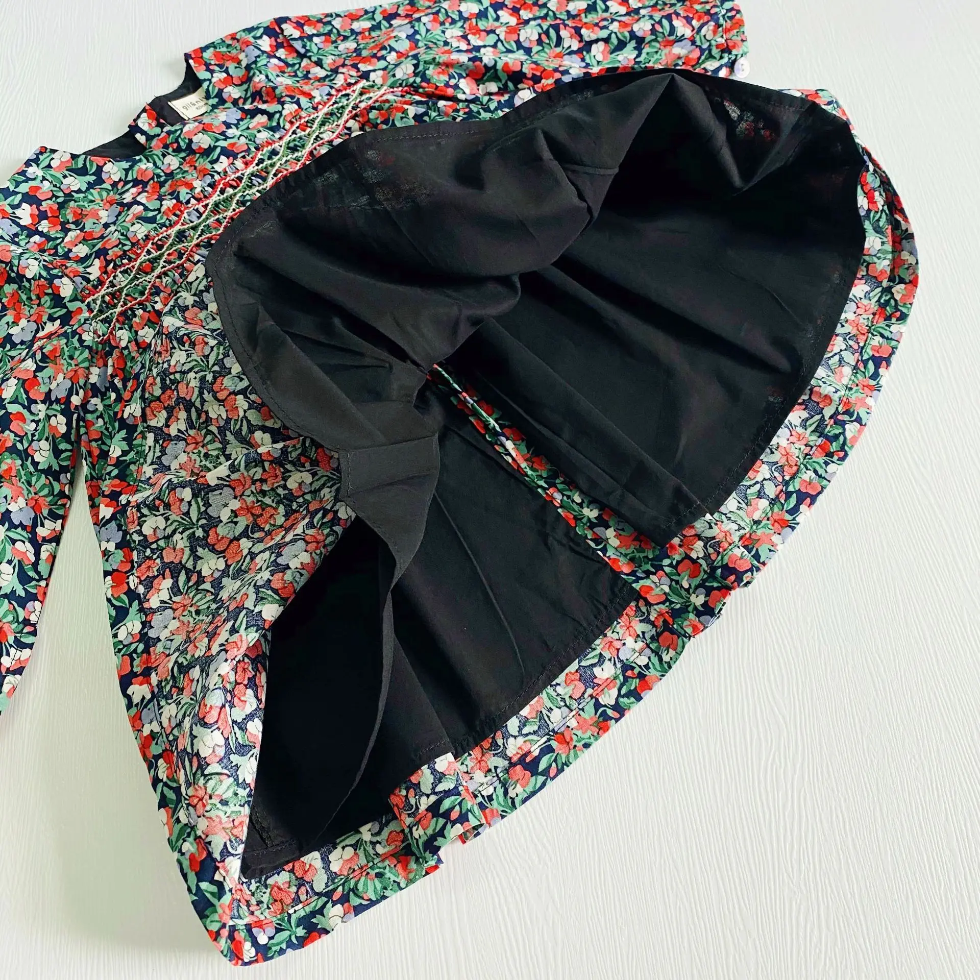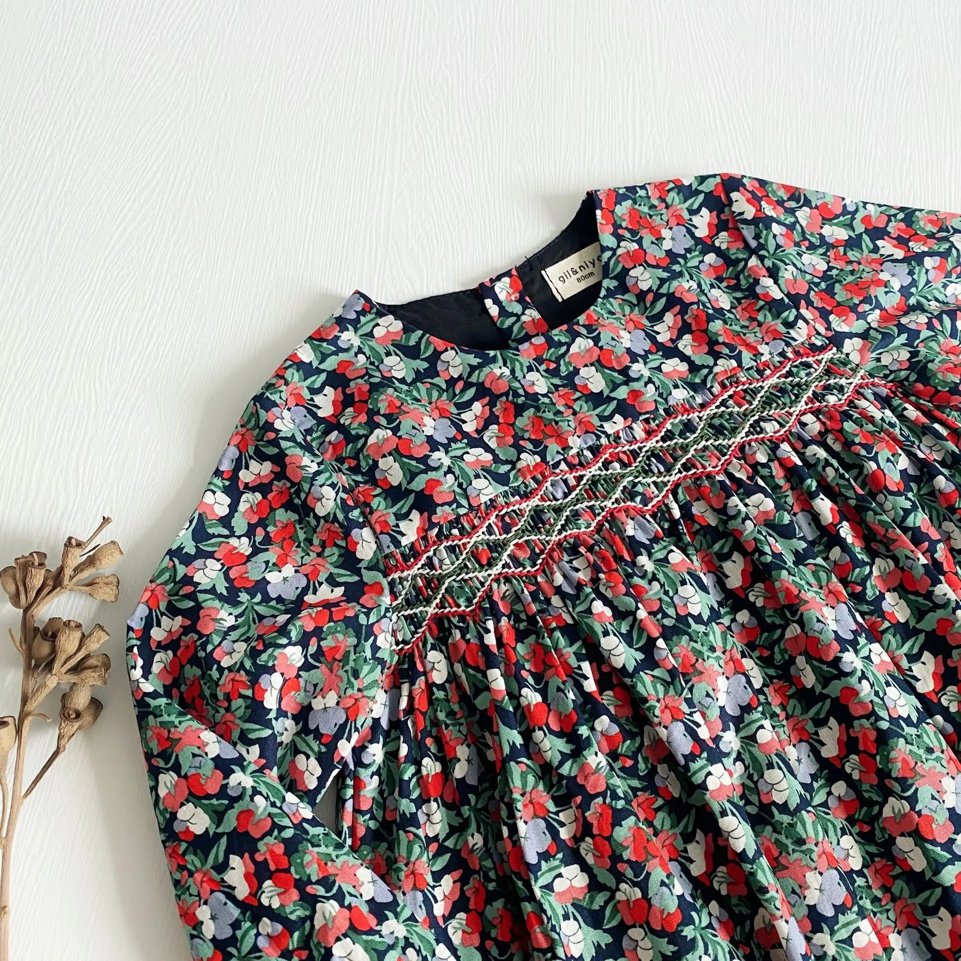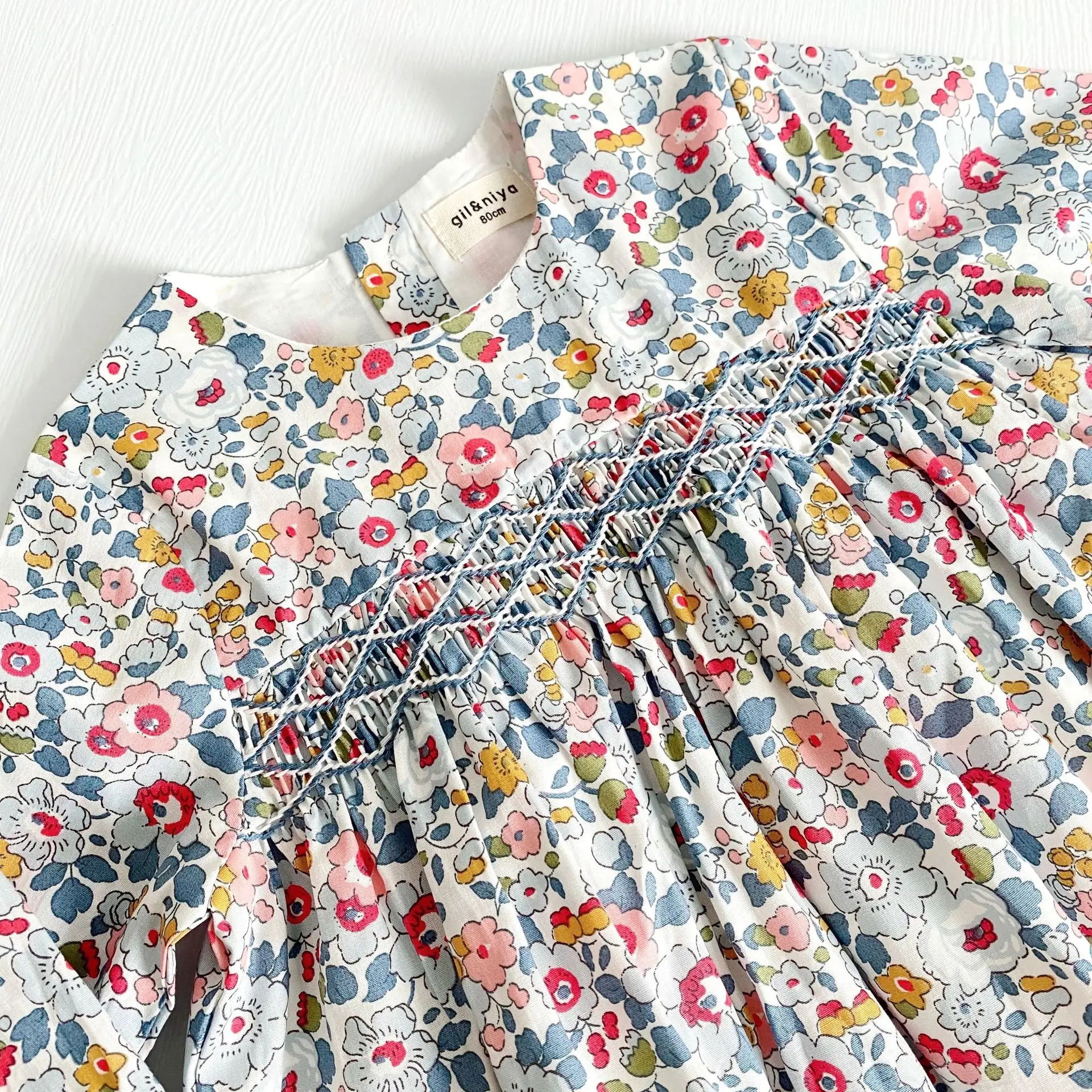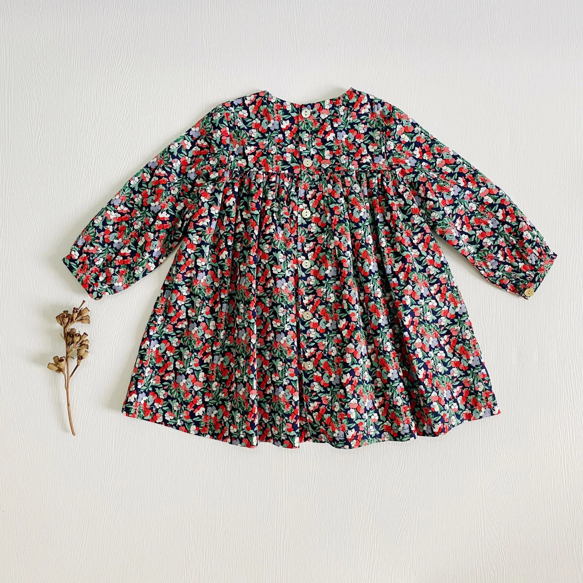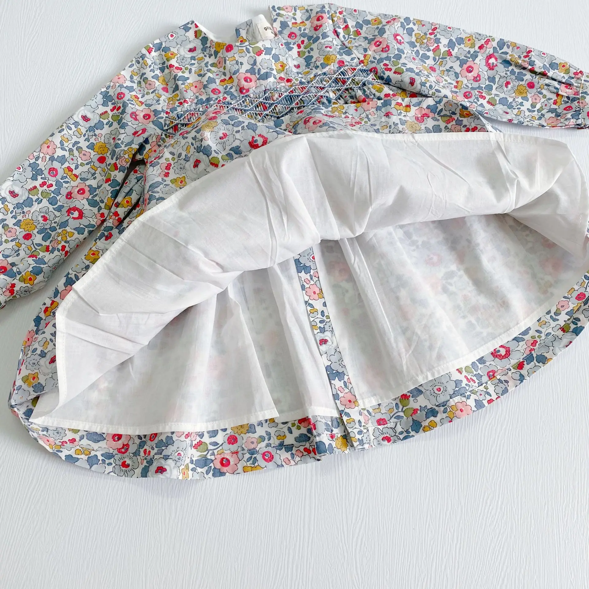 This long sleeve floral dress with a back closure is perfect for your little one to wear this season. The floral smock dress is comfy and soft and suits your little girl on her adventure. It's ideal for the little fashionista in your life! It features delicate flowers all over and is a picture-perfect style that can be dressed up or down.