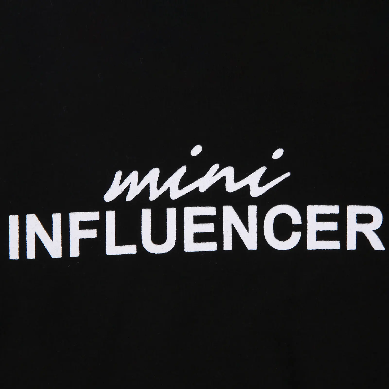 The Mini Influencer Tee in Black is cut from a soft cotton jersey and has a classic crew neckline, twisted rolled sleeves, and mini influence printed in contrast white on the chest. This tee comes with a matching white shirt to match with. This tee looks cool with denim and soft tailoring or paired back with our boots or shoes.