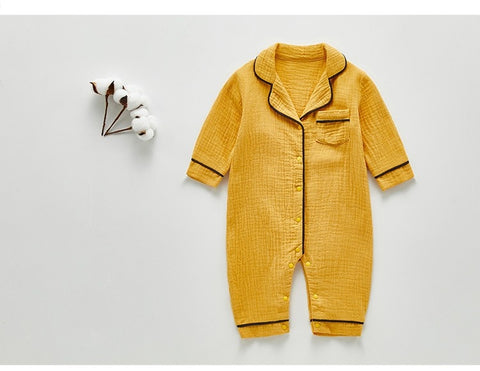 Kids will sleep blissfully in this solid kid's pajamas romper. It features long sleeves and a full front button closure. The bottom snap closure for an easy diaper change. The soft fabric will get them feeling comfy all night long!