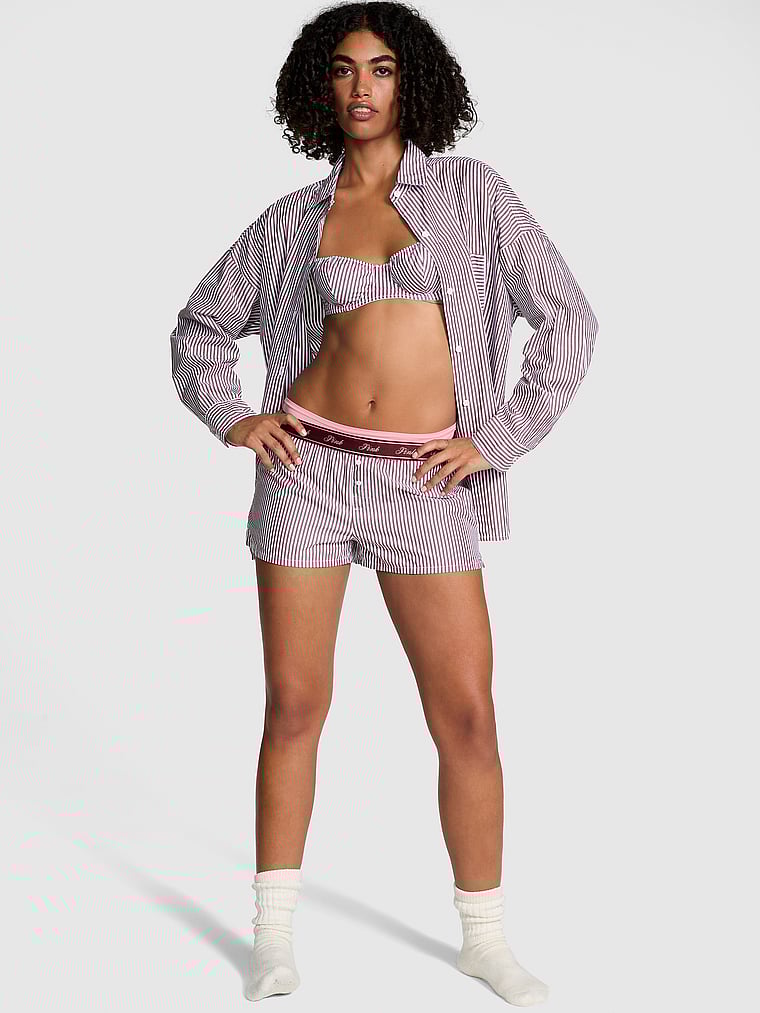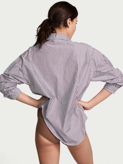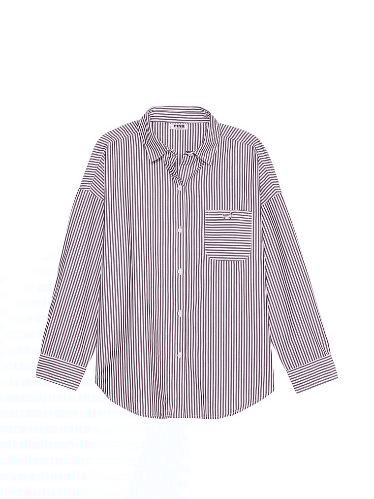 PINK Cotton Poplin Oversized Button-Down Sleepshirt