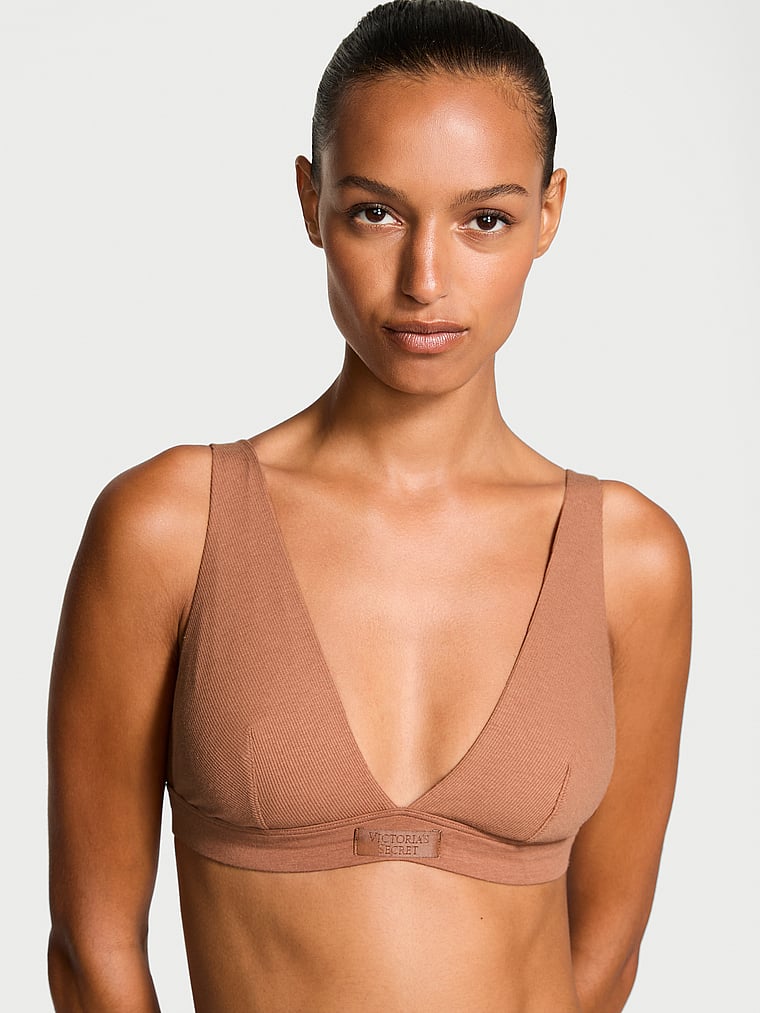 The T-shirt Wireless Ribbed Cotton Plunge Bralette Smooth