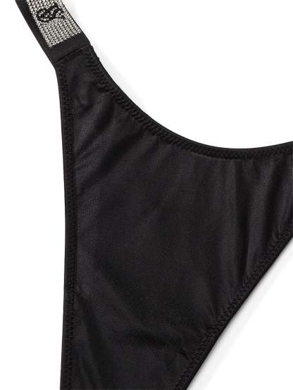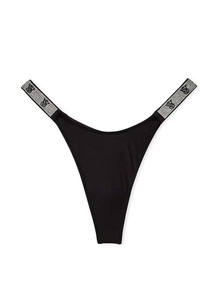 This barely there thong dazzles with our famous monogram logo shine straps in glittering rhinestones.