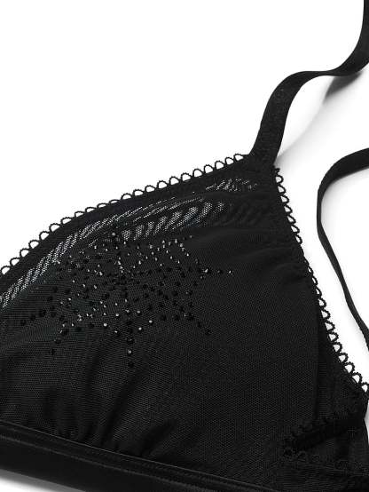 Spooky meets sparkly in our chic, sheer-mesh triangle style embellished with black diamante web motifs.