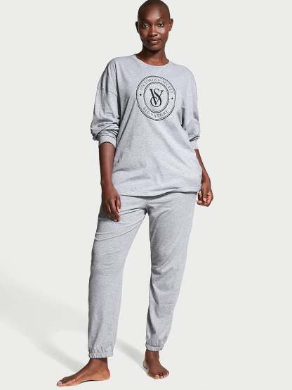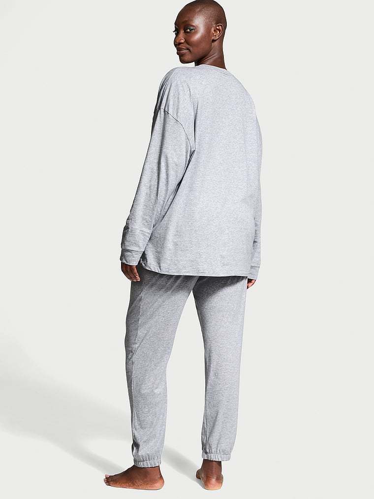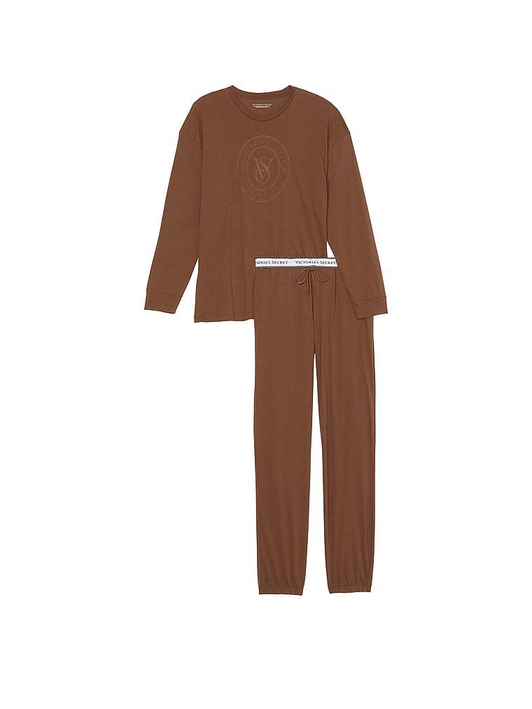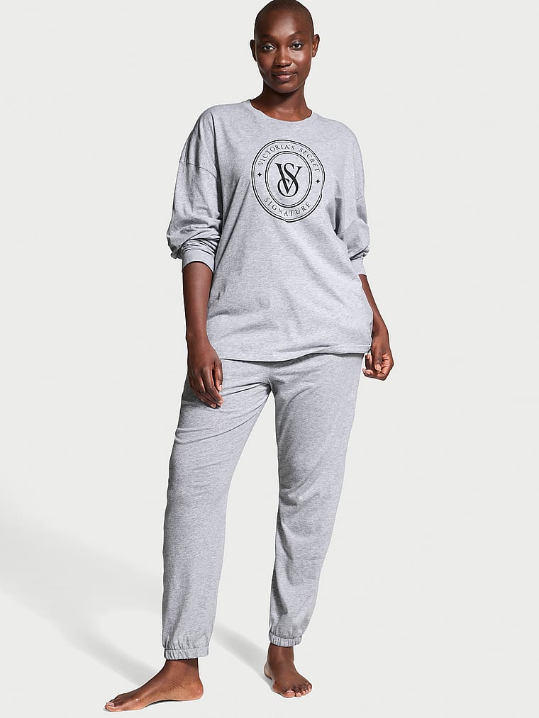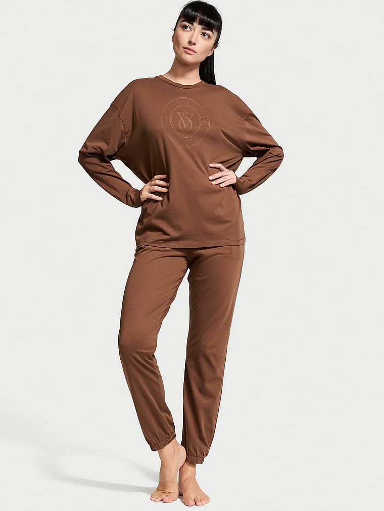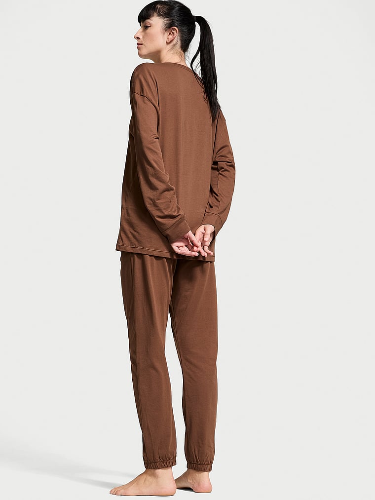Discover an all-cotton essential set you'll wonder how you lived without. Our logo details the soft, long-sleeved top, while the matching jogger-style pants feature a foldover waistband with our signature logo elastic.