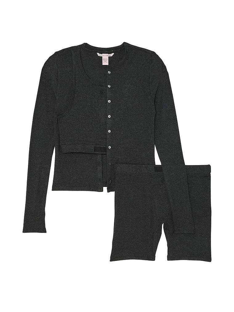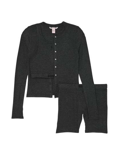 It'll be hard to choose your most valuable layer when you get your hands on this uber-soft, ribbed modal set. A cropped tank pairs with boxer briefs and it's all wrapped up with a matching cardi.