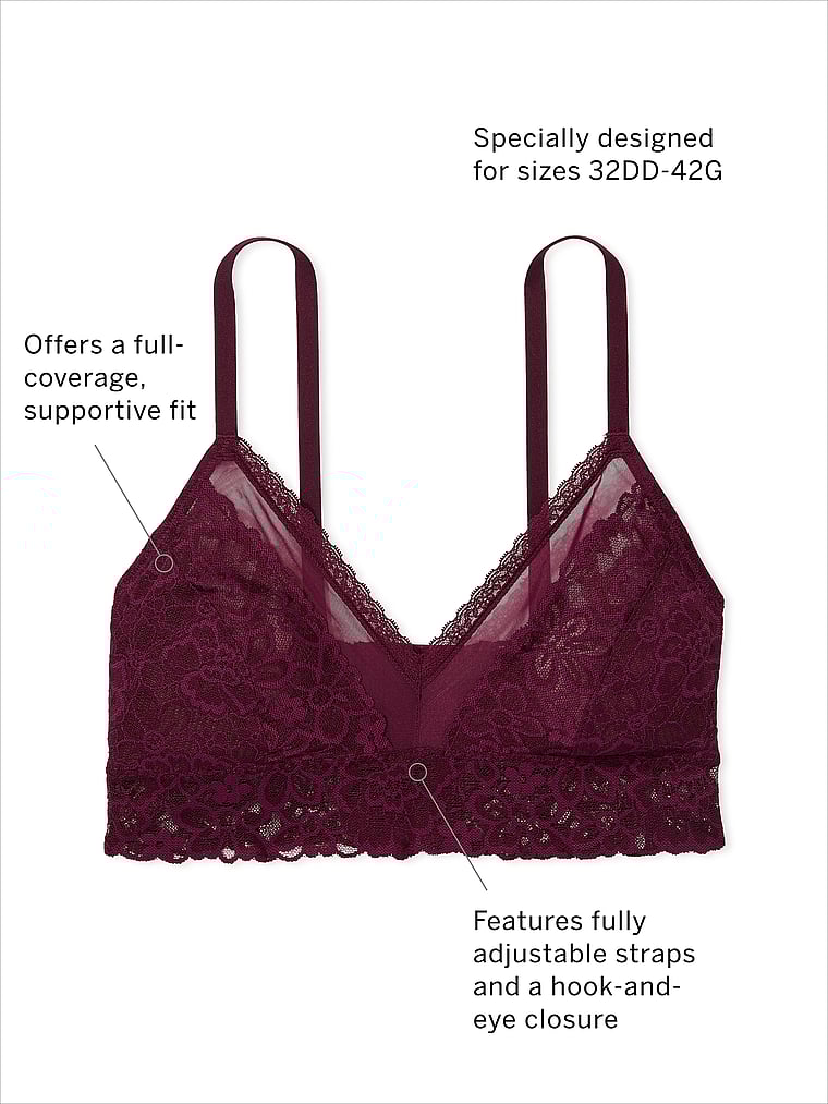 Our Posey Lace is supersoft, stretchy, and built to last. Showcased on a soft bralette in curvy styles designed for larger cup sizes. Mesh at the neckline allows for extra coverage and support.