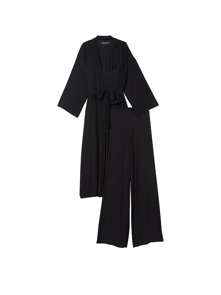 We've updated your downtime with this easy modal set. Featuring a long robe with self-tie waist, a comfy cami, and matching pants.