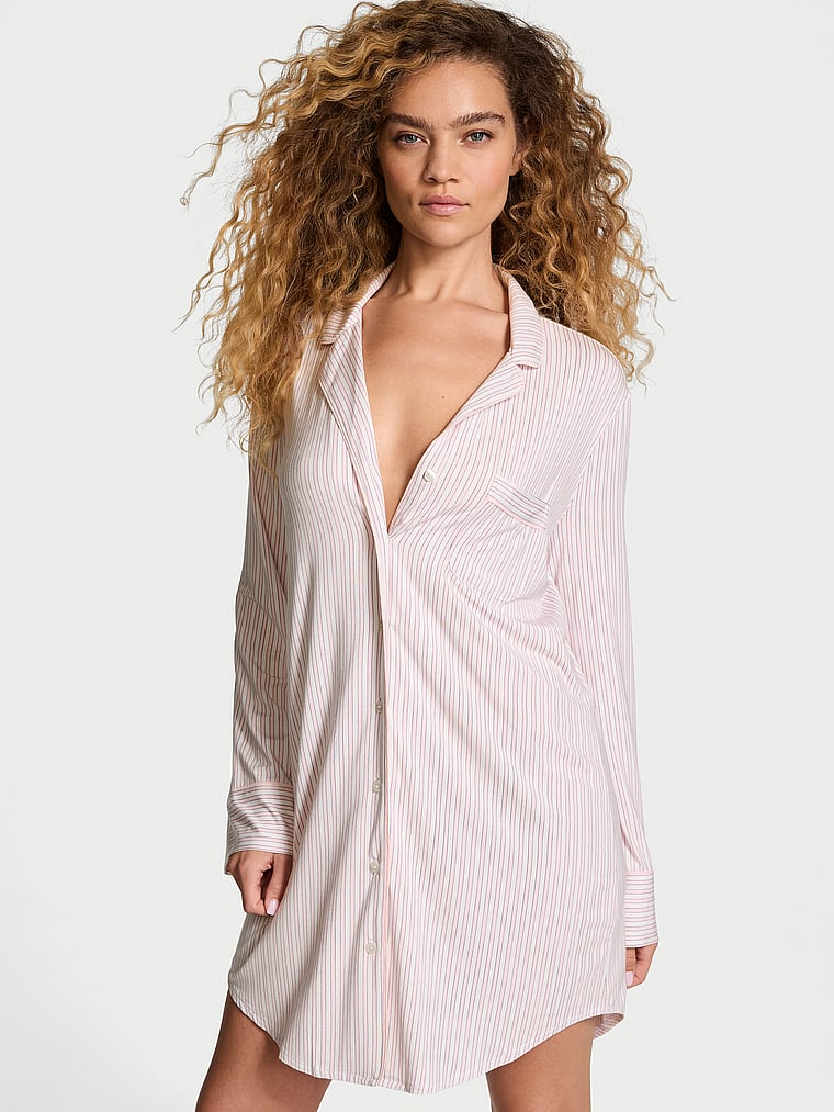This elongated button-front style features our buttery-soft and stretchy modal fabric��just the thing for a comfy night's sleep or lazy-day lounging.