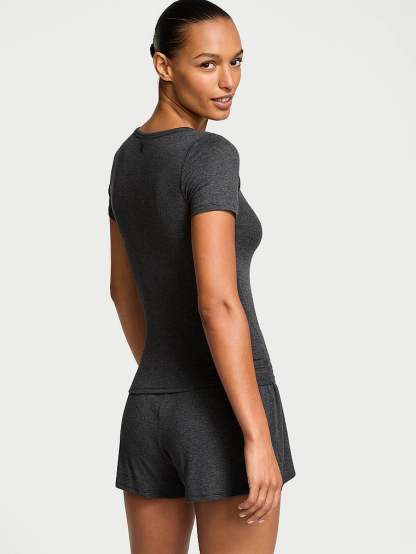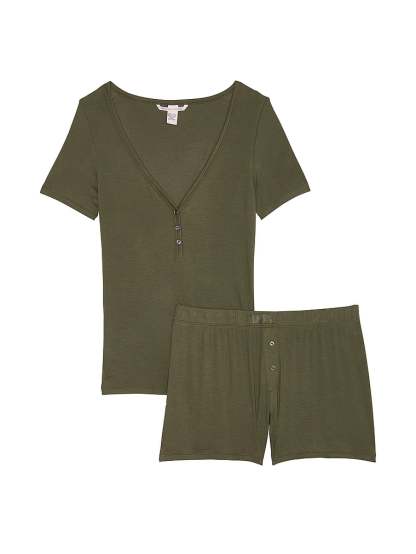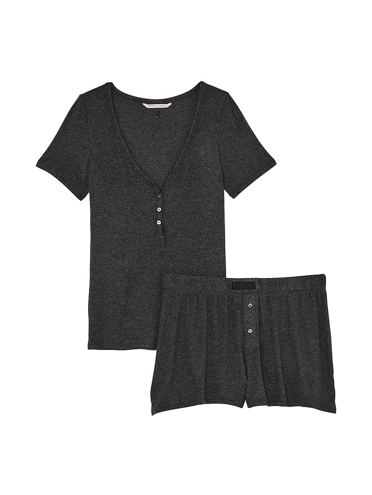 Victoria's Secret Ribbed Modal Short-Sleeve Henley & Boxer Shorts Set