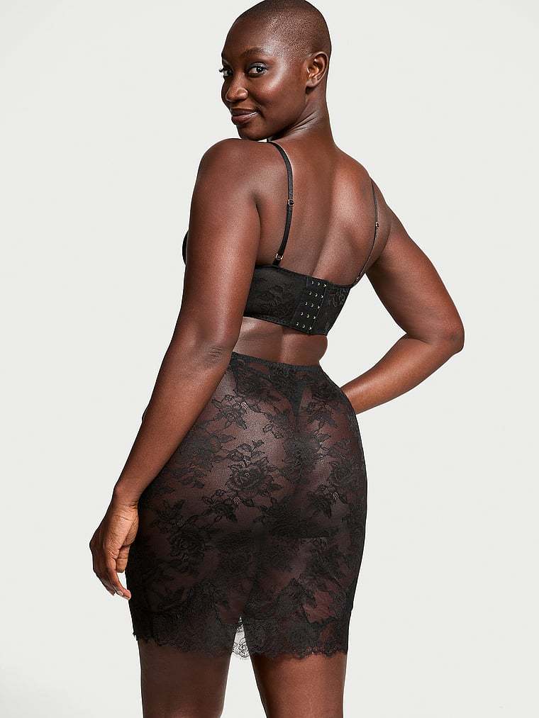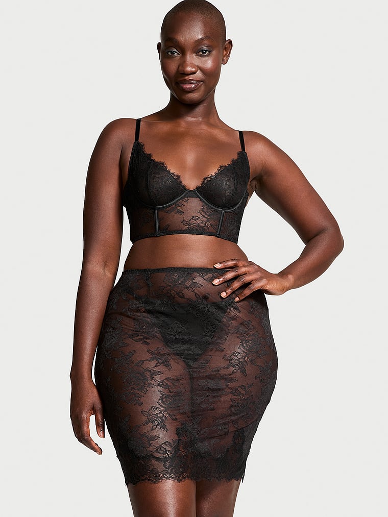 Victothtria's Secret Rose Lace Bralette & Midi Skirt Set