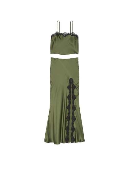 Victothtria's Secret Satin Lace-Trim Cropped Top & Slip Skirt Set