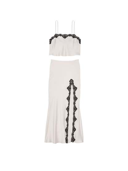 Victothtria's Secret Satin Lace-Trim Cropped Top & Slip Skirt Set