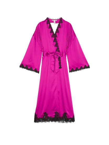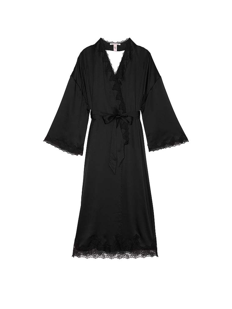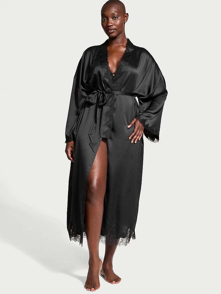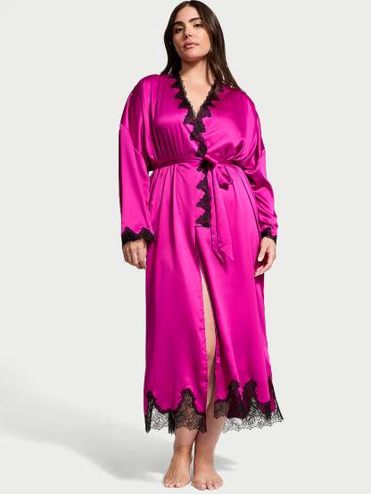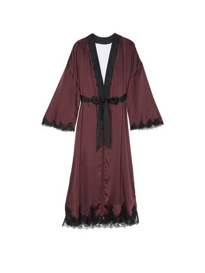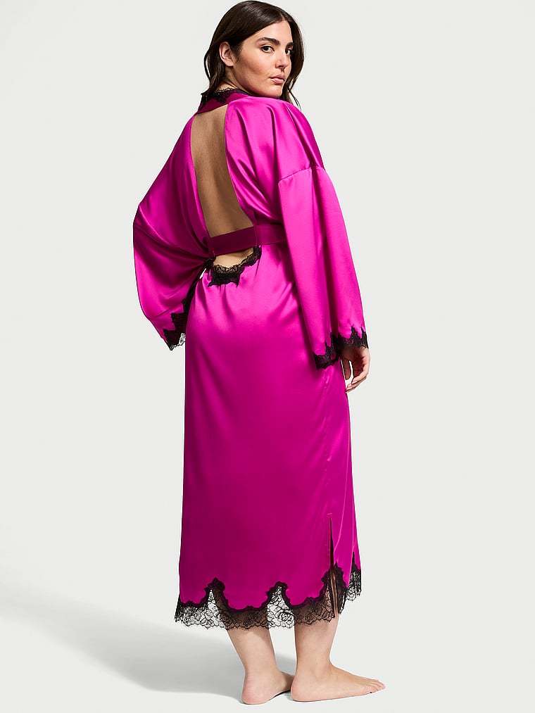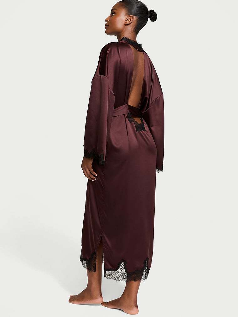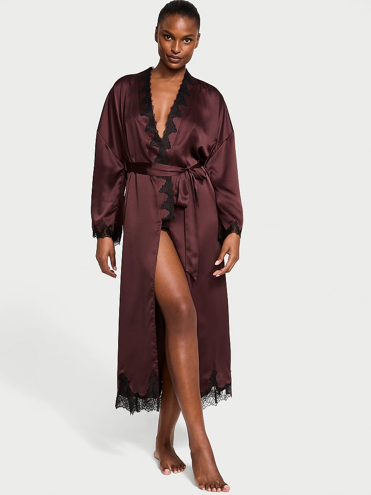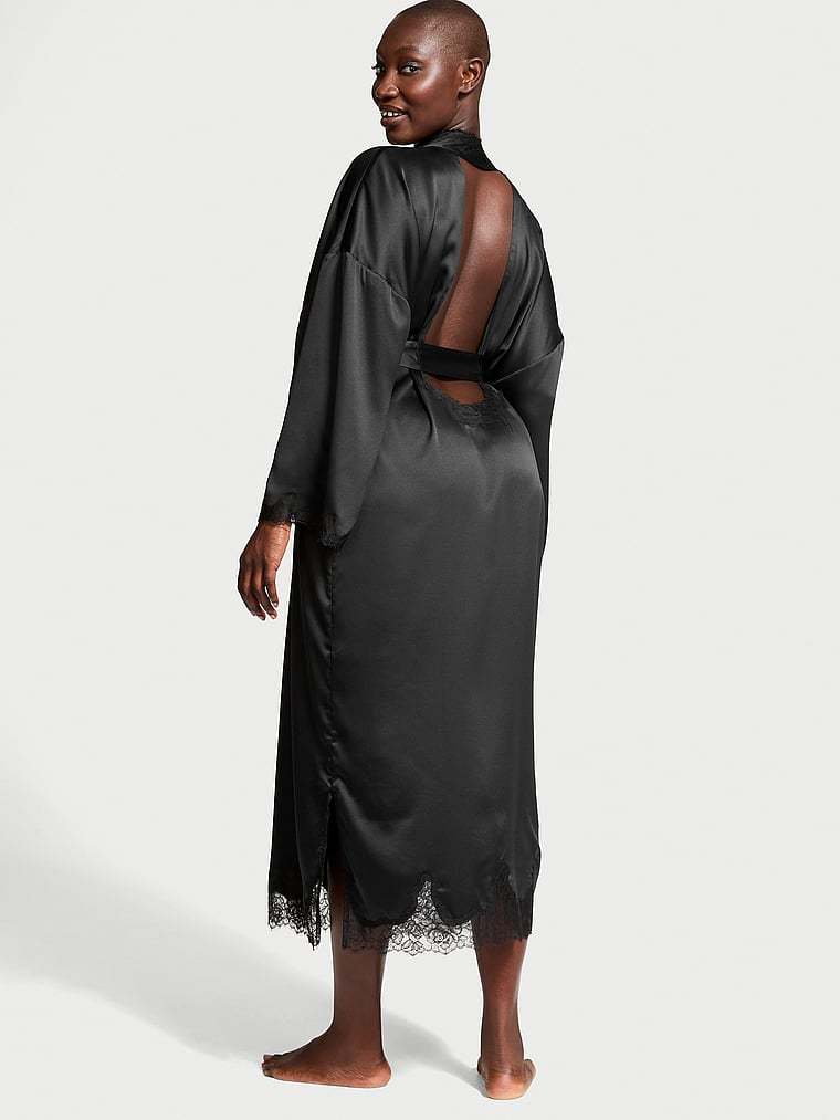 Victothtria's Secret Satin & Rose Lace Open-Back Long Robe