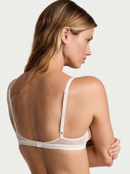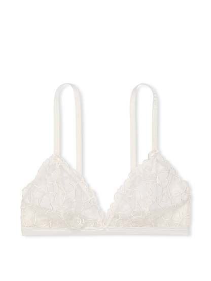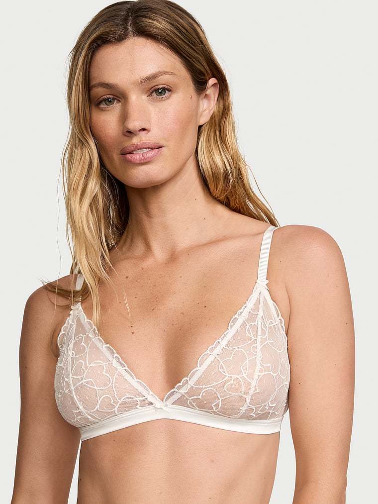 In sheer mesh with romantic heart embroidery, this wire-free piece is the perfect combination of cute and comfy for the big day and beyond.
