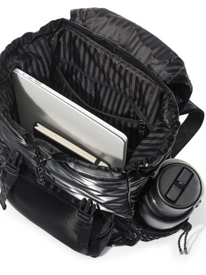 This backpack will take you from hiking to your next yoga retreat and everything in between. Made with high-gloss fabric for a sleek, liquid-shine look.