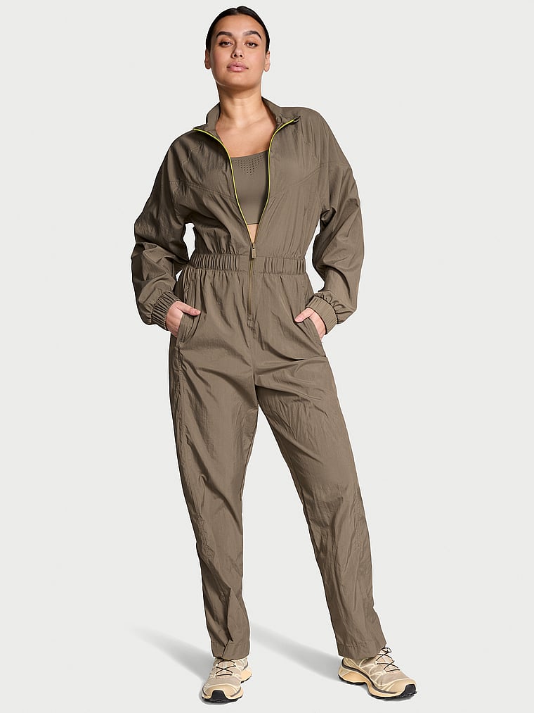 Throwback inspiration combines with modern energy in our sporty parachute onesie. This zip-front style is crafted in ultra-lightweight, recycled fabric.