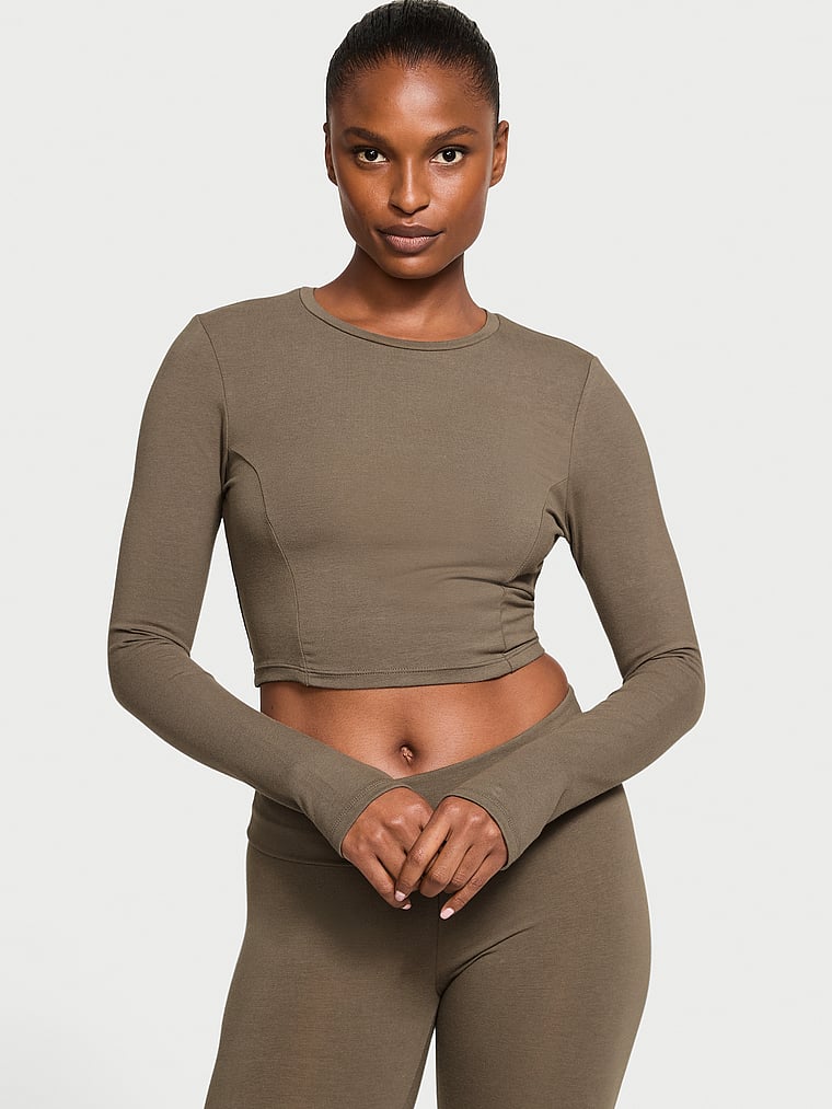 In a cropped silhouette with a body-skimming fit, this made-to-move style features thumbholes and a back cutout perfect for showing off your favorite VS Sports Bra.